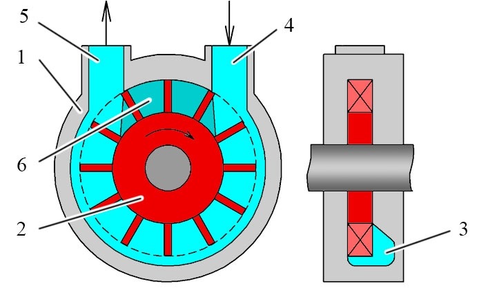 Вихревой насос состоит из следующих элементов: