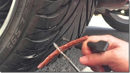 С него нужно снять пленку и положить в иглу. Иглу установить в место прокола, нажимая на ручку и вынимаем ее, оставляя жгут внутри прокола. Обрезаем части жгута, оставшиеся на поверхности. Это наиболее приемлемый способ решения проблемы. После него можно ездить, не меняя колесо, еще несколько месяцев.