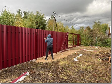 Второй вариант долговечнее, но дороже. Толщина металла не должна быть меньше 0,45 мм, иначе планки легко деформируются от ветра. Цвет стоит подбирать по каталогу RAL, чтобы вписать забор в общий дизайн участка. Необходимый набор материалов и инструмента: — металлические столбы 60 60 мм с заглушками; — поперечины-прожилины 40 20 мм; — евроштакетник нужного профиля; — цемент М400, песок, щебень; — шуруповёрт, уровень, бур 200 мм, отвес.
