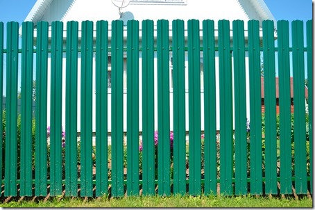 Для плотных суглинков достаточно 0,9 м. Ширина проёма между несущими столбами выбирается исходя из длины прожилин — обычно 2–2,5 м. Евроштакетник выпускается из оцинкованной или покрытой полиэстером стали.