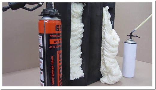 Промышленные пены выпускаются в баллонах со сжатым воздухом. Для их применения используется монтажный пистолет. Отметим, что баллон для эффективности распределения пены должен устанавливаться вертикально, горловиной вниз.